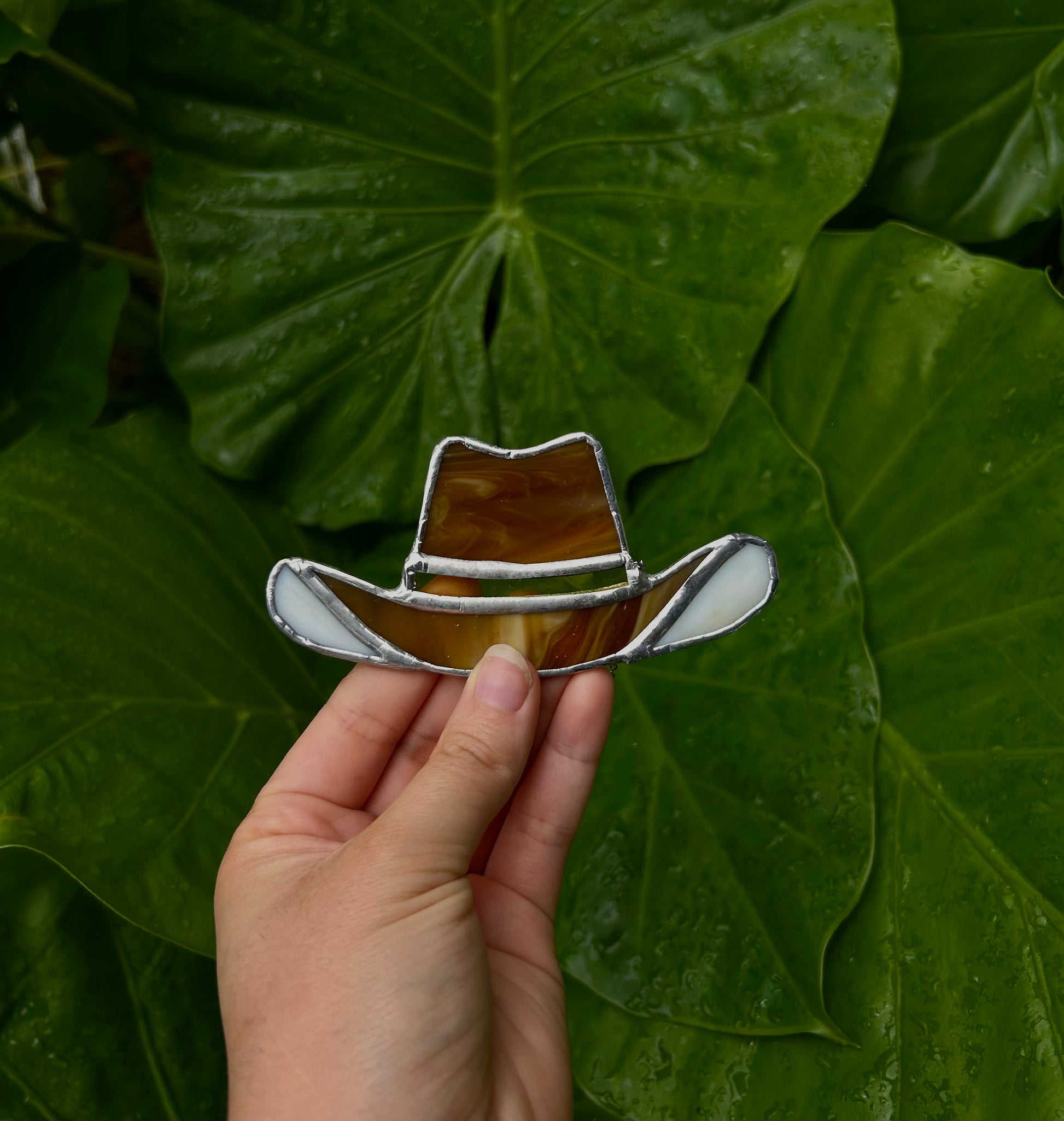 front Facing Cowboy hat stained glass art with an array of color combinations